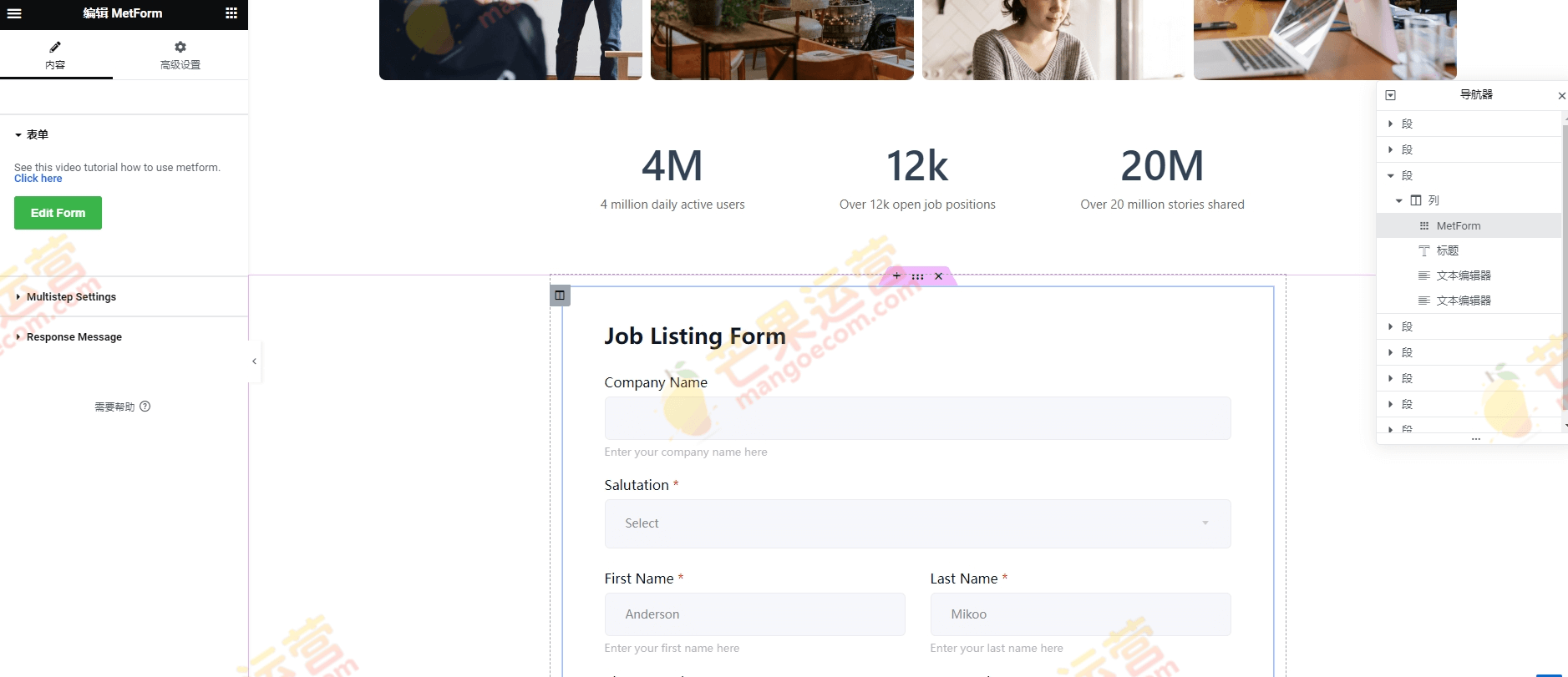 使用 elementor 构建的 Metform。 每个字段都是一个元素或小部件。
