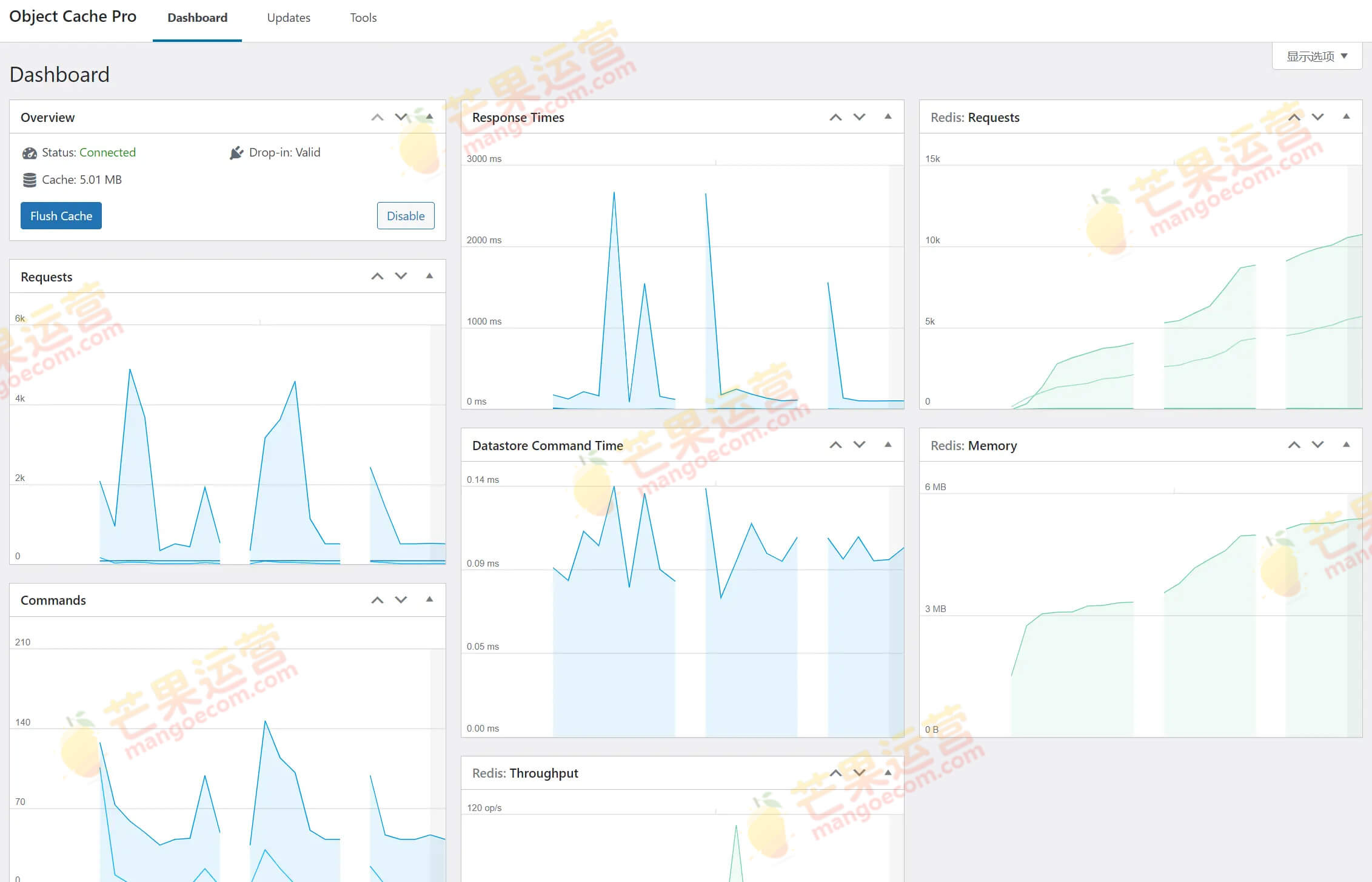 通过监控这些图表,你可以更好地理解 WordPress 站点与 Redis 缓存之间的交互,识别潜在的性能瓶颈,并采取措施进行优化。